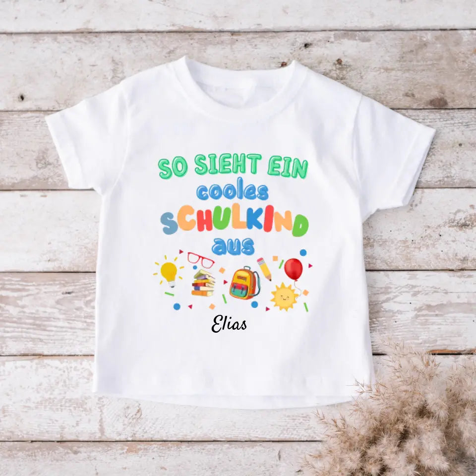 So sieht ein cooles Schulkind aus - Personalisiertes T-Shirt für Kinder zur Einschulung (100% Baumwolle)
