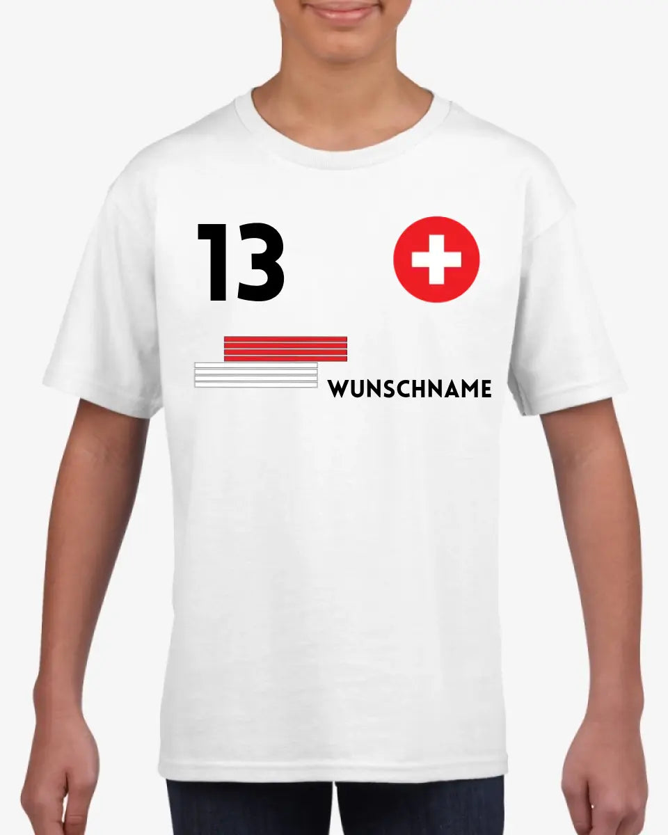 Fußball Schweiz Trikot Kinder individuell - Personalisiertes T-Shirt für Kinder (100% Baumwolle)