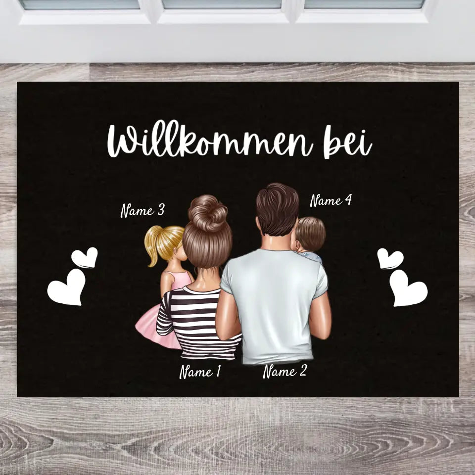 "Willkommen bei uns" Personalisierte Familien Fußmatte Schwarz (bis zu 4 Kinder)