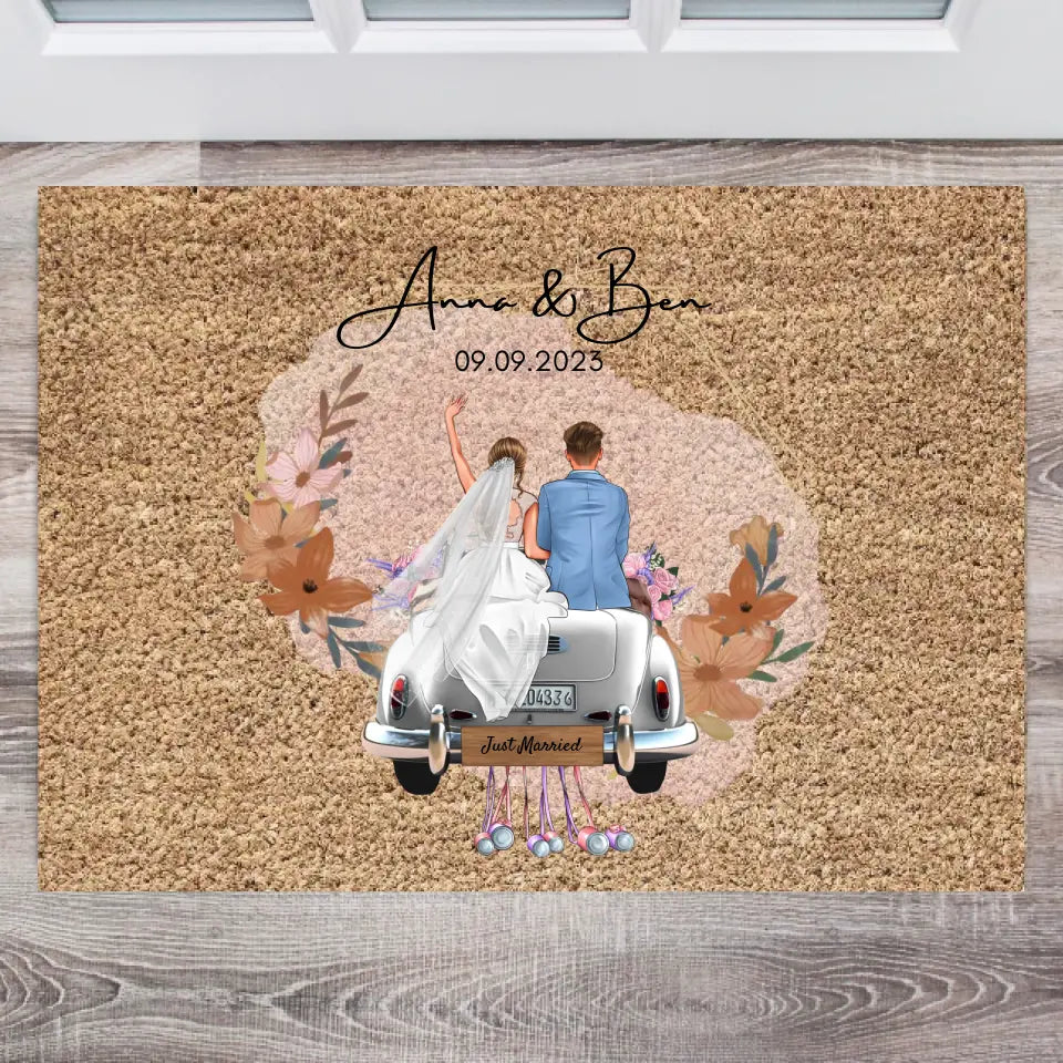 "Just Married" Personalisierte Fußmatte zur Hochzeit - Für Ehepaare, Braut & Bräutigam, Hochzeitsgeschenk, gemeinsames Zuhause - Herzlichen Glückwunsch