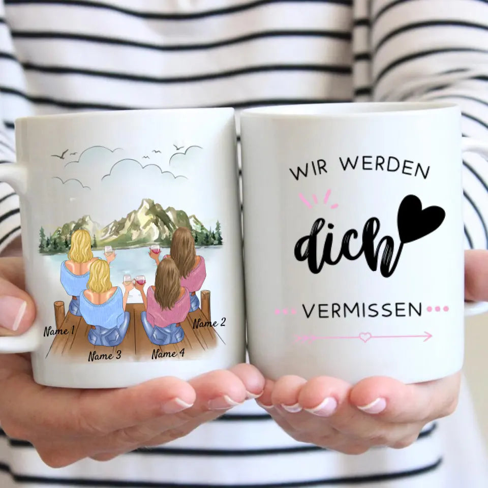 Wir werden dich vermissen - Personalisierte Tasse für Arbeitskolleginnen zum Jobwechsel - Geschenk Abschied (2-4 Personen)