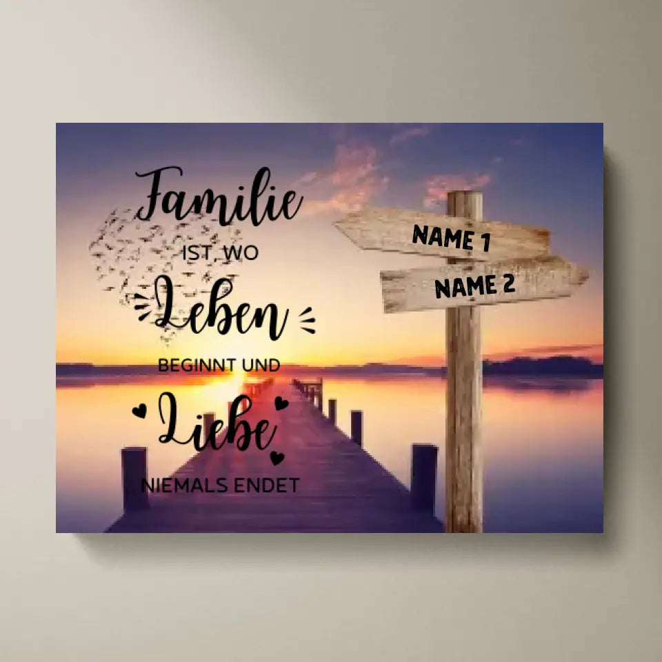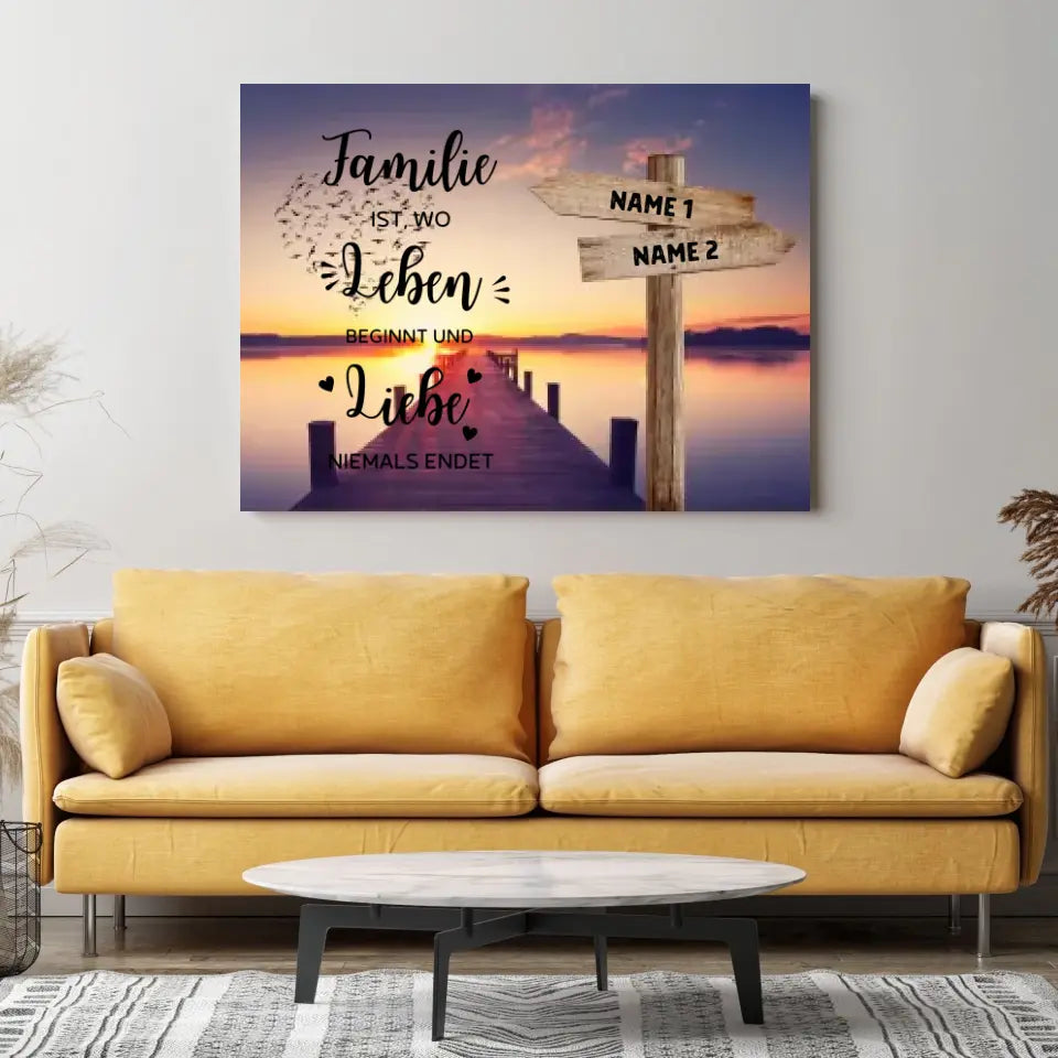Unser Lieblingsort - Personalisierte Familien-Leinwand mit Namensschildern & Spruch (2 - 8 Personen)