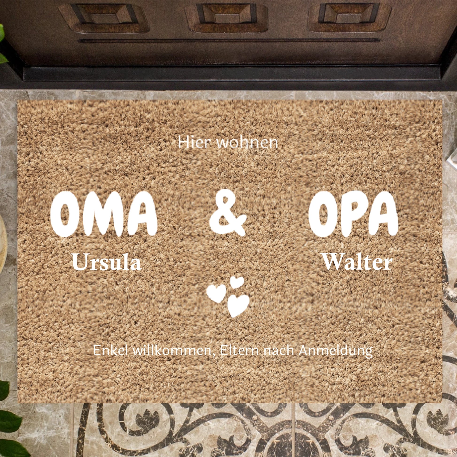 Oma & Opa, Enkel Willkommen - Personalisierte Fußmatte für innen & aussen
