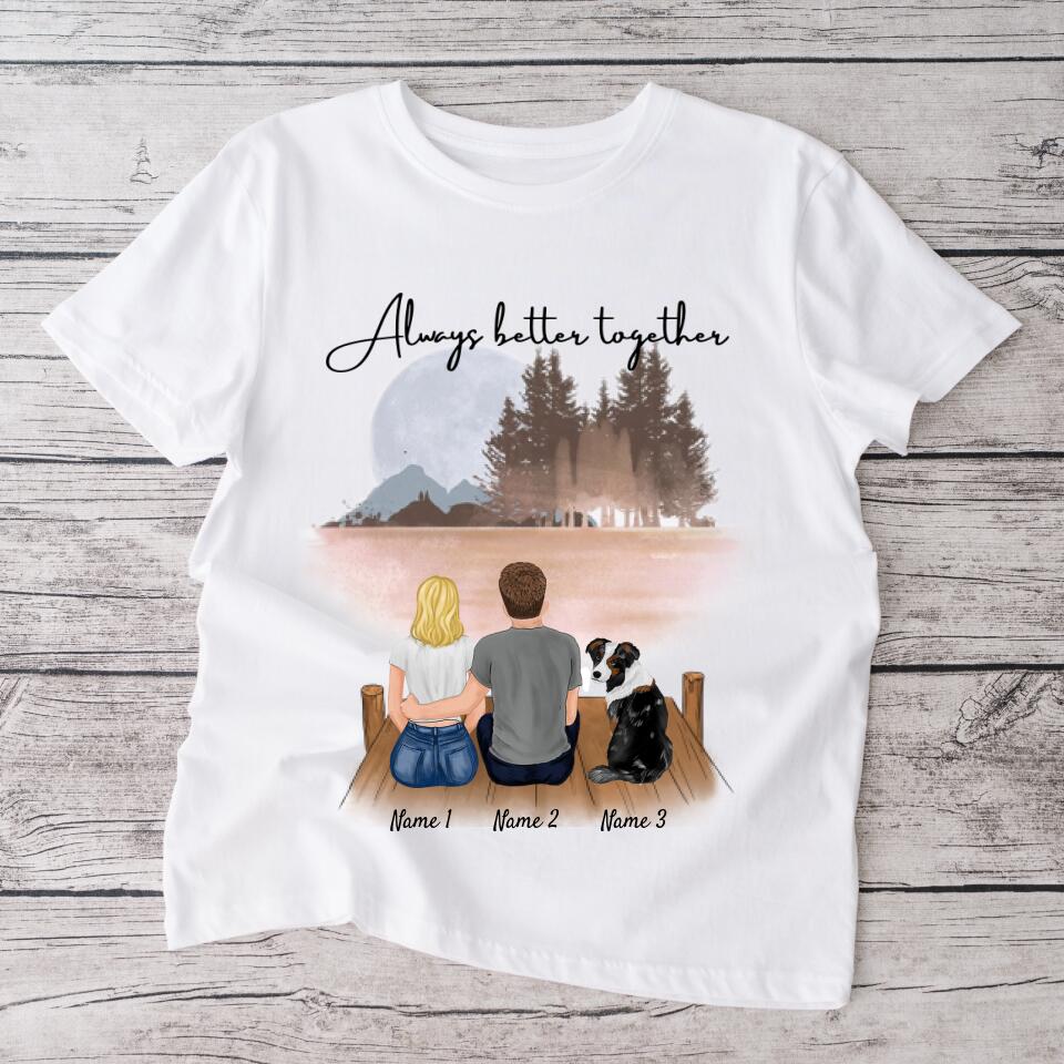 Couple with pet - Personalized T-Shirt (Dog & Cat)