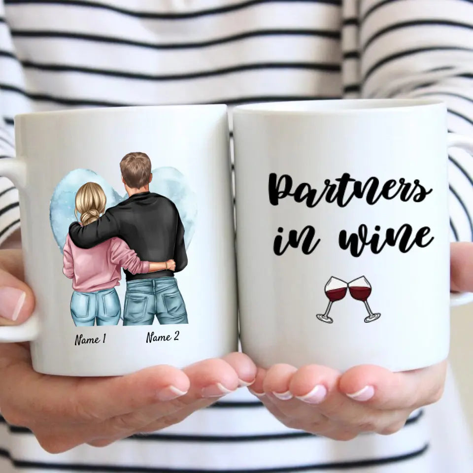 Partners in Wine - Personalisierte Pärchen-Tasse (Mann & Frau)